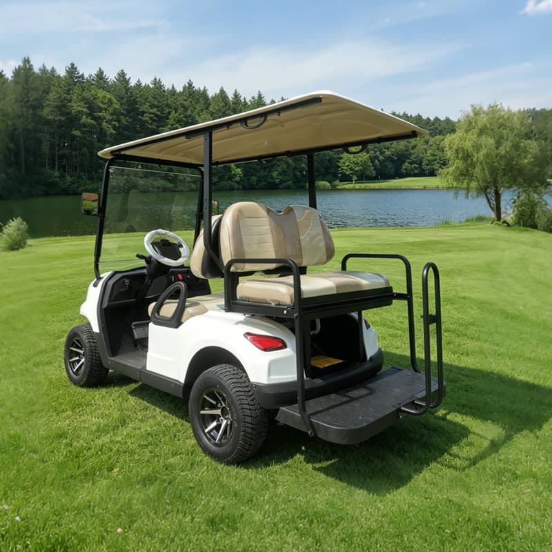 Le modèle EG202EKSZ de Mobilité Plus se distingue par sa banquette arrière réversible, qui permet de passer en quelques secondes d’une configuration 2 places avec plateau de chargement à une configuration 4 passagers. Une flexibilité unique pour les golfs, campings, parcs, résidences et tous les sites privatifs souhaitant un seul véhicule capable de s’adapter à chaque situation.