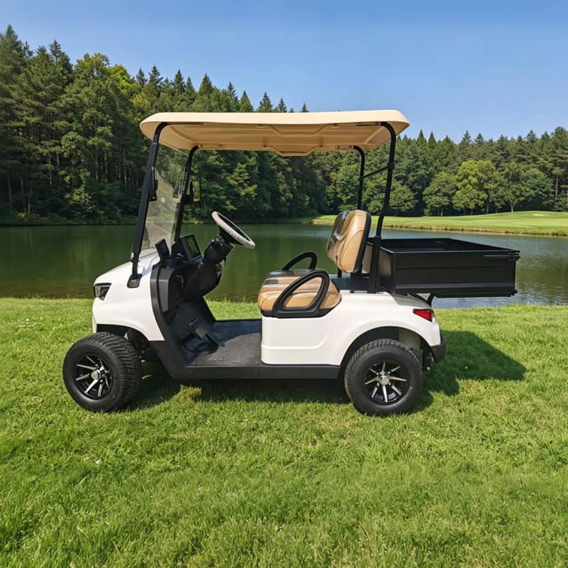 Découvrez la Golfette Eagle 2 places Benne, la référence parmi nos voiturettes de golf électriques professionnelles et polyvalentes.