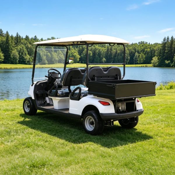 Découvrez la Golfette Eagle 4 places Benne, l’une des références les plus complètes parmi nos voiturettes de golf électriques professionnelles et polyvalentes.