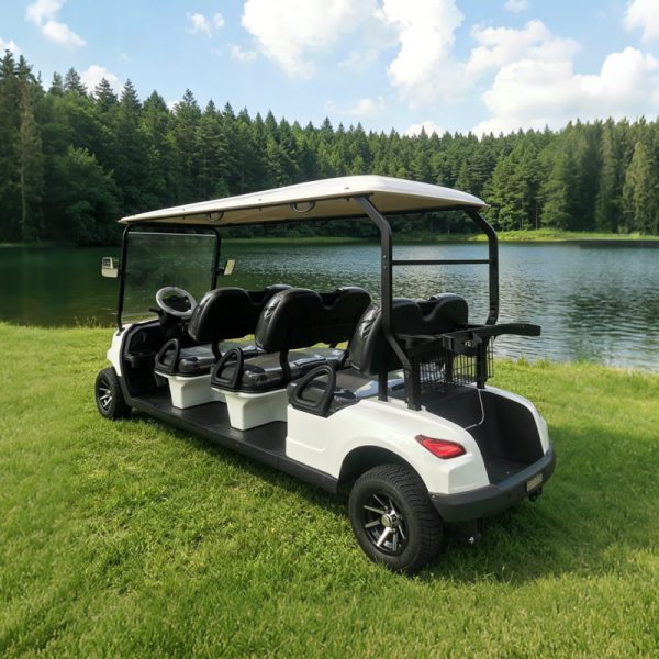 Équipée d’un moteur électrique AC de 5 kW, la Golfette Eagle 6 places offre une vitesse maximale de 32 km/h et une capacité de gravissement des pentes allant jusqu’à 20 %. Certifiée CE pour l’Union européenne, elle répond à toutes les exigences réglementaires pour une utilisation sur les sites privés français et européens.